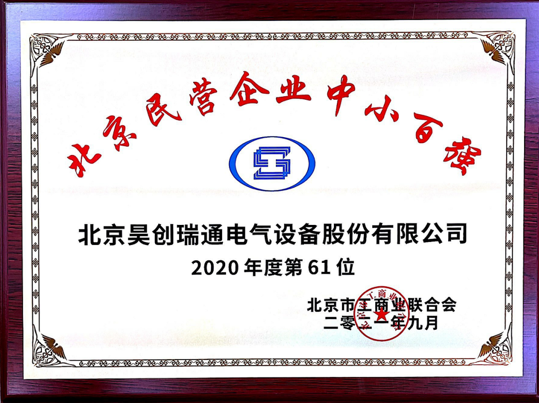9月16日,北京市工商業(yè)聯(lián)合會召開“2021北京民營企業(yè)百強發(fā)布會”,發(fā)布北京民營企業(yè)“1+4”百強榜單,我司有幸入選2020年度北京民營中小百強企業(yè)榮譽稱號,排名第61位。